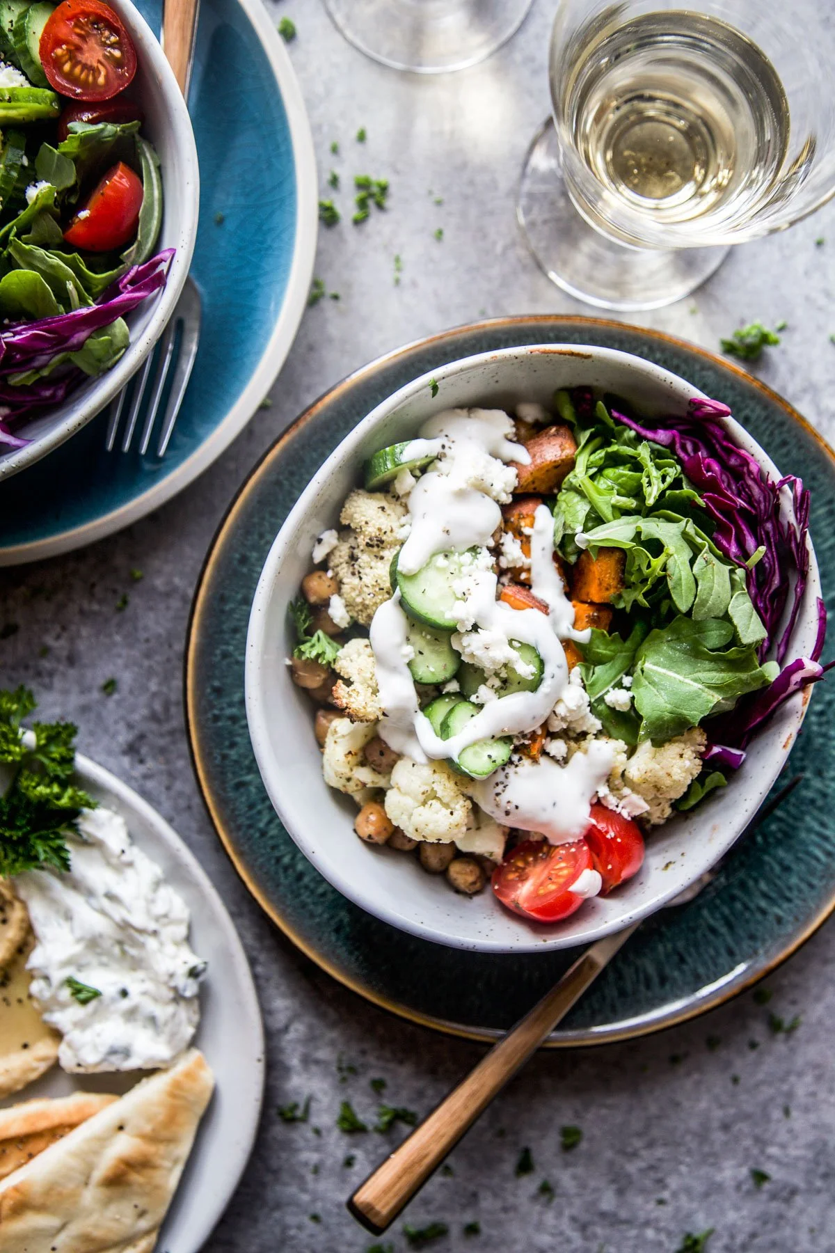 Recently whipped up a bowl similar to this one and fell in love! These roasted veggie za’atar bowls feature cauliflower, sweet potatoes, lemon + cabbage, all in season this month. These flavors combine to make a mouth-watering meal inspired by Middle Eastern cuisine. Feel free to add in even more seasonal veggies like asparagus, broccoli, carrots + brussel sprouts.